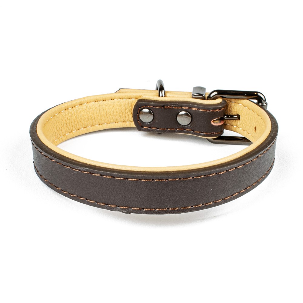 - Material und Farbe: Hergestellt aus echtem Leder in brauner Farbe bietet das Halsband nicht nur Stabilität, sondern auch eine elegante visuelle Wirkung.