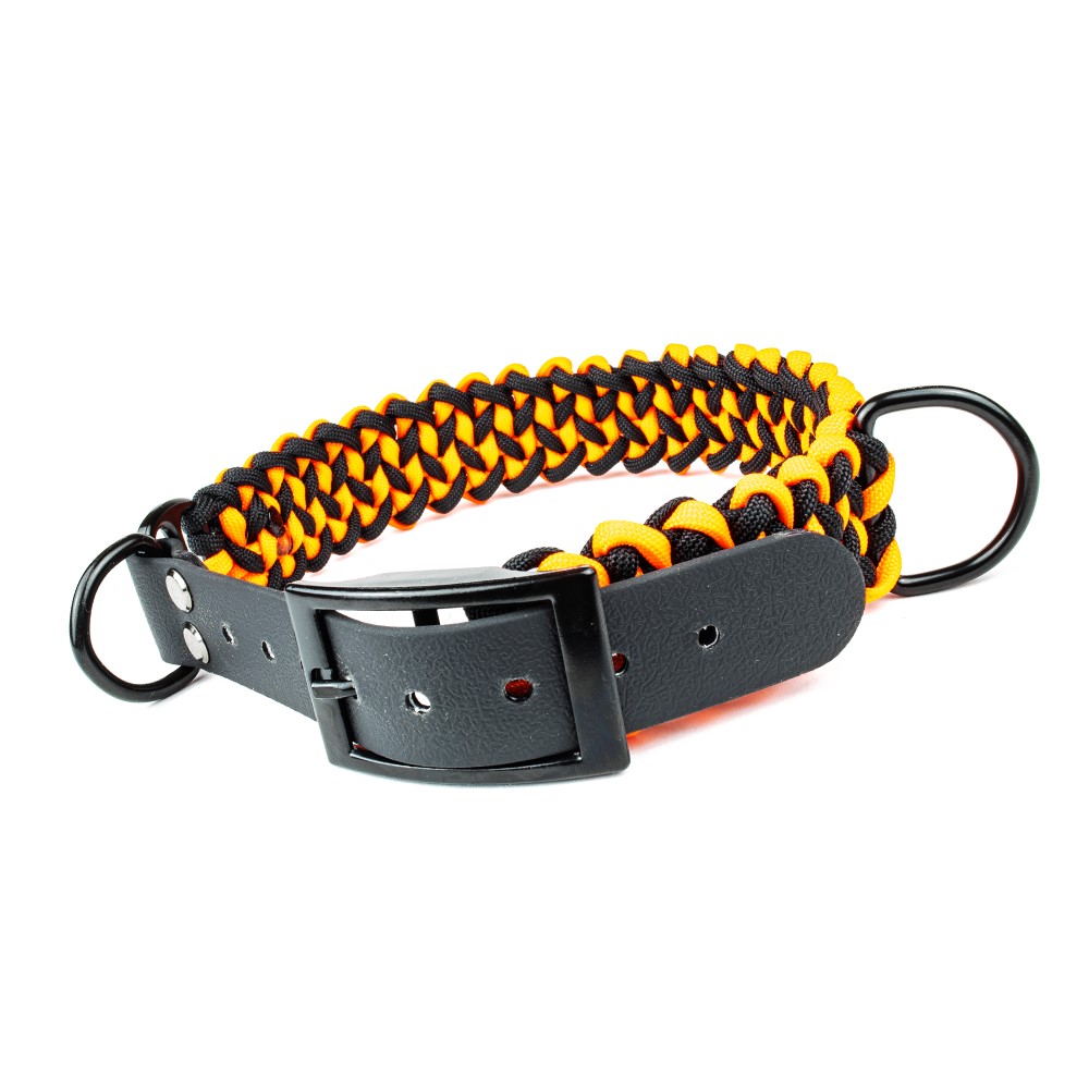 Hundehalsband Tierluxe Modell „Historisch“ orange-schwarz Handgemacht Paracord Biothane