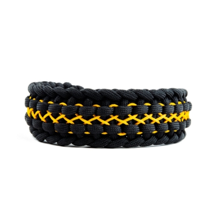 Das Hudnehalsband Nachtschimmer ist eine perfekte Kombination aus elegantem Design, Haltbarkeit und Funktionalität. Sie wurde speziell für Hundebesitzer entwickelt, die ihrem Vierbeiner Komfort und einen einzigartigen Stil bieten möchten. Materialien und Verarbeitung: Die Leine wird in Handarbeit aus hochwertigem schwarzem Paracord gefertigt – ein Material, das für seine Robustheit und Verschleißfestigkeit bekannt ist und sich hervorragend für aktive Hunde eignet. Feine goldene Fäden aus Micro-Paracord verleihen das Halsband Eleganz und Stil und unterstreichen ihr exklusives Design. Diese Kombination macht das Halsband nicht nur optisch ansprechend, sondern auch extrem strapazierfähig – ideal für den täglichen Spaziergang, das Training oder besondere Anlässe. Verschluss und Personalisierung: Der Metallverschluss ist nicht nur robust, sondern bietet auch die Möglichkeit zur Gravur von Namen, Telefonnummern oder anderen wichtigen Informationen. Dies sorgt für zusätzliche Sicherheit, falls Ihr Haustier verloren geht, und verleiht das Halsband gleichzeitig eine persönliche Note. Design und Stil: Das Nachtschimmer-Halsband ist für Hunde aller Rassen geeignet – von klein bis groß. Ihr luxuriöses Schwarz-Gold-Design macht Ihren Hund zu einem echten Hingucker bei jedem Spaziergang. Sie ist die perfekte Wahl für Hundebesitzer, die ein praktisches und modernes Accessoire suchen, das den Charakter und die Eleganz ihres Lieblings betont. Vorteile: Gefertigt aus strapazierfähigem Paracord, ideal für aktive Hunde. Goldene Mikro-Fäden für einen stilvollen Akzent. Metallverschluss mit Möglichkeit zur Gravur für Personalisierung. Bequem, sicher und geeignet für den täglichen Gebrauch. Einzigartiges Design, das alle Blicke auf sich zieht. Wählen Sie das Hundehalsband Nachtschimmer, um Ihrem Hund Komfort, Sicherheit und Stil zu bieten! Dieses Accessoire vereint modernes Design mit maximaler Funktionalität – ideal für Sie und Ihren vierbeinigen Freund.