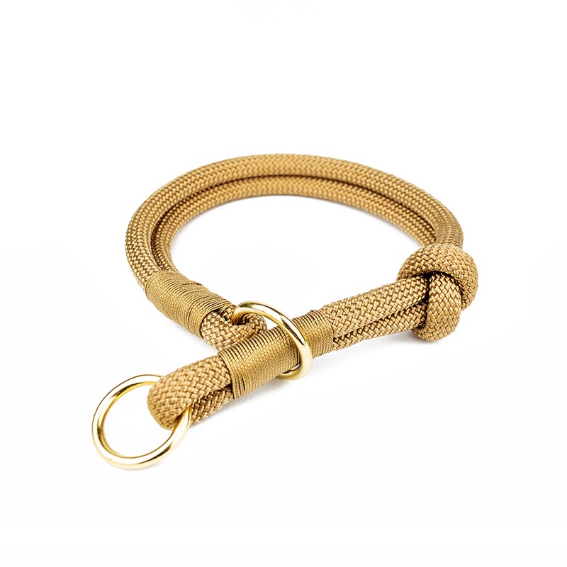 Hundehalsband Tierluxe Zugstopp Tau Seil Mocca und Gold