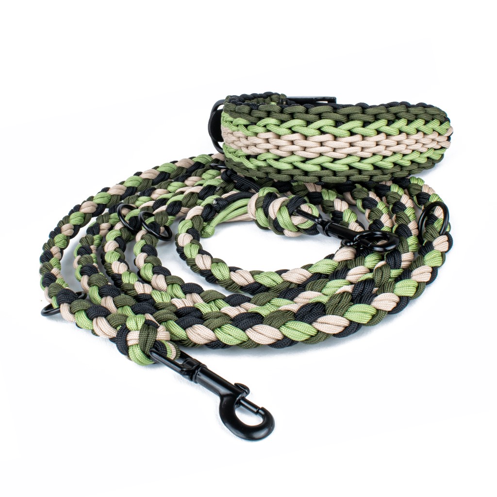 Unsere Hundeleinen im Modell Natur bestehen vollständig aus hochwertigem Paracord, das außergewöhnliche Haltbarkeit und Widerstandsfähigkeit für den täglichen Spaziergang bietet. Sie verfügen über bis zu fünf O-Ringe, die zahlreiche Konfigurationen und Längeneinstellungen je nach Bedarf ermöglichen. Dadurch sind sie extrem vielseitig und praktisch – die Leine kann einfach für kürzere oder längere Spaziergänge angepasst oder bequem am Handgelenk befestigt werden. Diese Leinen bieten nicht nur Sicherheit für Ihren Hund, sondern verleihen auch einen stilvollen Look, indem sie klare Linien mit der Ästhetik der Natur kombinieren.